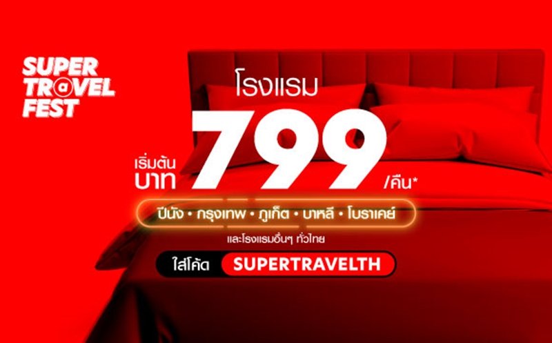 airasia Super App จัดโปรสุดปัง SUPER Travel Fest จองโรงแรมดีลเด็ดเริ่มต้นเพียง 799 บาทต่อคืน!