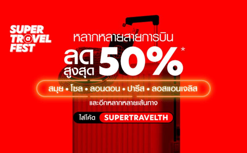ถ้าการเดินทางในอาเซียนยังไม่ตอบโจทย์ SUPER Travel Fest มีโรงแรมและเที่ยวบินอีกหลากหลายจุดหมายปลายทางที่เราลดให้สูงสุดถึง 50% เพื่อจองเที่ยวบินกับหลากหลายสายการบิน สามารถเปิด airasia Super App กดเข้าไปที่ปุ่ม “เที่ยวบิน หรือ Flights” ค้นหาจุดหมายปลายทางที่ต้องการ ไม่ว่าจะเป็นเกาะสมุย โซล ลอนดอน ปารีส ลอสแอนเจลิส และอื่นๆ อีกมากมาย พลาดไม่ได้ จองเลย!