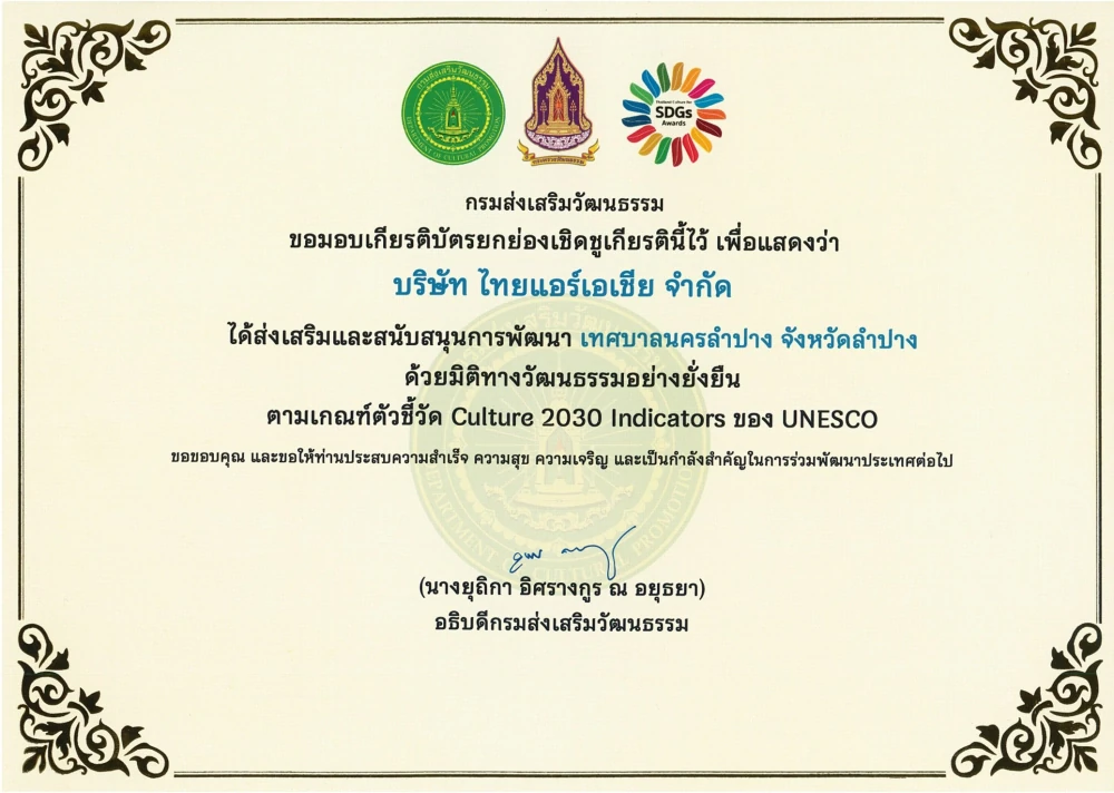 ไทยแอร์เอเชียได้รับเกียรติบัตรเชิดชูเกียรติ “Thailand Culture for SDGs Awards 2025” ภายใต้โครงการ Village to the World